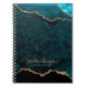 Notebook de script Dourado Glam Teal Velvet Agate Geode