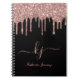 Rosa Dourado Glitter Drips 2 Monograma Script personalizado nome personalizado notebook monograma. Apresentando um falso quadro de gotejamento cor-de-rosa rosa-rosa-rosa-claro, fonte grande de script monograma com letras duplas com hastes (iniciais de tamanho grande) e um nome de cheio em cor-de-rosa em fundo preto. É fácil personalizá-lo. presente feminino excelente para namorada, mãe, aniversário, casamento, chá de panela, doce 16 festas de aniversário e chás de fraldas, negócios, escritório doméstico, trabalho profissional e para qualquer pessoa que goste de coisas bonito de vidro.