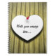 Um coração de papel, preso ao fundo do painel de madeira rústico. Fonte de script manuscrito para personalizar os produtos de acordo com as suas necessidades.