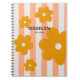 pink Stripes e flores amarelas - caderno espiral personalizado com script, elegantes listras cor-de-rosa e caderno espiral personalizado de flores amarelas.