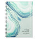 O notebook Chic Watercolor combina com nossa suíte de marcas Agate do Oceano e apresenta um fundo verde-claro adornado com ilustrações de fatia de Godes-Cana em tons etéreos de seaglass. Personalize com dois campos de texto personalizados no canto inferior direito.