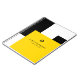 Um notebook profissional com um pop de cor em um simples e ousado padrão de blocos de cor amarela, branca e preta de barramento escolar faz uma exibição impressionante com apelo gráfico. Adequado para qualquer tipo de negócio, há um logotipo decorativo de amostra na frente que você pode substituir pelo logotipo ou sair como está. Personalize com seu nome e título ou outro texto desejado.
