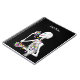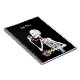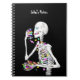 Notebook com minha obra de arte original para Halloween um personagem esquelético comendo doce.