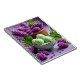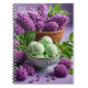 Uma tigela cheia de sorvete verde colocada ao lado de flores de lilás em uma composição simples e elegante de comida doce com folhas de menta. Personalize este caderno, adicione seu nome ou monograma.