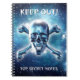 Keep Out! and Top Secret Notes text can be customized by you. Metallic skull and crossbones design set in outer space.