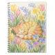 Experience calm and relaxation with this lovely notebook, that has a delightful, crayon, textured drawing of a happy ginger cat sleeping snugly in a colorful garden of spring flowers. Nestled in pastel, colored tulips, daffodils, and pansies, the illustration embodies the tranquil delight of a warm sunny day. Allow this adorable setting to be a comforting reminder that you need to take a break, relax, and let your nicest thoughts and ideas grow on each page. A perfect gift or personal use of writing down your thoughts, drawing, or just bringing a little bit of peace to your everyday life.