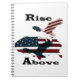 A icônica ascensão de águia careca acima do mapa das estrelas e listras famosas, América. Uma mensagem inspiradora maravilhosa nestes tempos.