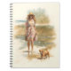 Pintura de uma mulher andando pela praia com seu cachorro.
