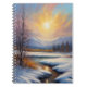 Abrace a tranquilidade da canvas da natureza com este belo notebook espiral fotográfico. O trabalho de arte digital captura o encanto de um nascer do sol sobre uma paisagem nevada. Um rio sereno flui suavemente através de um campo coberto de neve branca pristina. Este caderno encapsula a beleza serena de uma manhã beijada pela geada.