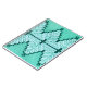 Técnica de tocha em fios têxteis em vinheta com padrão de pulso gráfico em branco e retrô dos anos 50 Aquamarine e Brunswick Greens