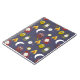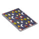 Características deste produto um teste padrão de acampamento do tema da região selvagem com ilustrações das corujas, de uma fogueira, do compasso, das lanternas, da lua, e das estrelas.