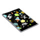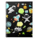 Notebook diverso com tema espacial, com astronautas, foguetes, naves espaciais, planetas e estrelas.