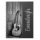 Notebook espiral com uma foto rústica em preto e branco de um violão inclinado contra uma porta. Personalize com seu nome escrito em uma fonte de script fofinha. Entre em contato conosco para obter ajuda com a personalização ou para solicitar produtos correspondentes ou coordenadores.