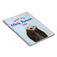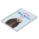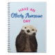 Um caderno espiral com uma adorável lontra na água segurando seu rosto em suas pequenas patas. O texto acima da cabeça diz: Tenha um dia completamente incrível. Um trocadilho bonito escrito em uma fonte de tipografia de tendência.