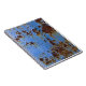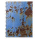 Caderno Espiral Textura de metal e tinta azul.