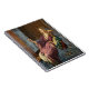 This design features a painting by the British Pre-Raphaelite artist John Collier (1850–1934). It depicts an elegant young woman seated in an interior space that conveys both comfort and quiet luxury. She leans slightly back, her posture relaxed yet slightly provocative, suggesting a degree of playful self-awareness. One of her arms rests casually against her own shoulder, while the other holds a small mirror, hinting at themes of vanity and reflection. Her gaze is directed either at herself or just beyond, leaving her exact thoughts ambiguous and inviting the viewer to speculate on her intentions. The woman is dressed in a flowing gown of soft, warm tones, with a sash tied at her waist, which enhances the graceful contours of her figure. Her long, wavy hair cascades loosely around her shoulders, adding a romantic, Pre-Raphaelite softness to her appearance. Light falls gently on her face and upper body, illuminating her features and drawing attention to the subtle expression that balances innocence with flirtation. The warm, intimate atmosphere, combined with the careful rendering of fabrics and textures, creates a scene that is both aesthetically pleasing and psychologically intriguing. The Minx belongs to the genre of “problem pictures”, in which Collier and other Victorian painters deliberately left narrative elements ambiguous to provoke thought and moral reflection. The woman’s expression and gesture suggest multiple readings: she could be admiring her own beauty, scheming, or subtly asserting her charm and independence. The title, The Minx, reinforces this sense of playful mischief or flirtation, reflecting late-Victorian fascination with femininity, desire and the power of self-awareness.