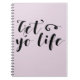 Tem gente na sua vida que você deseja que a derrube e pare de agir de bobo o tempo todo? Diga-lhes para terem sua vida com este caderno de argumentos manuscrito e moderno da tipografia, com as palavras "Get yo life". Personalize este humorístico bloco de notas de slogan adicionando o seu próprio texto e escolhendo a sua própria cor de fundo.
