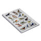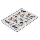 Notebook mostrando um desenho colorido vintage de muitas aves diferentes de todas as variedades e cores da antiga série de cartões publicitários Arm e Hammer Baking Soda.
