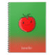 Um tomate vermelho bonito estilo cartoon. Notebooks personalizados com nome. Design desenhada à mão. Editar nome para personalizar. Dar uma ideia para pessoas de todas as idades que amam tomates e legumes fofos.