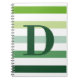 Listras em diferentes formas de verde. Com um caderno personalizado monograma em cores frescas.