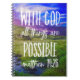 Todas As Coisas São Possíveis Notebook Spiral De Escritura Versa De Bíblia Com Papel Vinculado. Com Deus, todas as coisas são possíveis cartões postais de Bíblia verso - Matthew 19:26 - com uma bela fotografia do pôr do sol como pano de fundo.