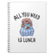 Tudo o que você precisa é de almoço. É hora do almoço. Um cão engraçado na mesa pronto para almoçar. Uma combinação perfeita para crianças e adultos.