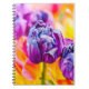 Violeta colorida, tulipas roxas, cor-de-rosa num leito de flores. Praticamente todas as cores do arco-íris estão presentes. Bela e positiva cena floral. Fotografia macro.