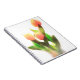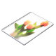 Tulipas laranja num fundo branco. Fotografia artística de Paul Hood em um diário ou caderno em espiral.