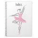 Um presente perfeito para a sua dançarina, professora de dança ou coreógrafa favorita, este notebook apresenta uma bailarina pintada em um tutu rosa com calçados de ponta rosa. O nome no topo pode ser personalizado.