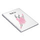 Um presente perfeito para a sua dançarina, professora de dança ou coreógrafa favorita, este notebook apresenta uma bailarina pintada em um tutu rosa com calçados de ponta rosa. O nome no topo pode ser personalizado.