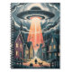 Caderno Espiral UFO Abduction Night Street Illustration