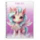 Caderno Espiral Unicórnio no céu, nuvens e estrelas rosas e nome