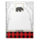 Caderno Espiral Urso Rústico e Xadrez Vermelho de Plaid Country Wo