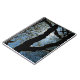 Uma silhueta de galhos de árvores ao sol da tarde, com novas folhas de Primavera.