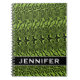 Características deste design do caderno um teste padrão abstrato com líquido-como formas do splotch ou da gota, várias máscaras coloridas de claro e de verde escuro. Igualmente caracteriza um nome personalizado.
