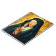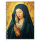O fundo comum e escuro contrasta com a cabeça radiante da Virgem e com a morada branca que a cobre, e as mãos dela são cuidadosamente fechadas.