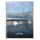 Uma vista noturna do porto de Aberdyfi depois de um dia de chuva o sol sai.