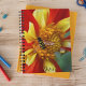 Um notebook de tamanho pessoal, encadernado em espiral, que apresenta a foto do cobrir de uma mosca Hover, em preto e amarelo, listrada, em uma flor de colarinho laranja e amarelo. Um design floral adorável! Use como diário ou para fazer anotações.