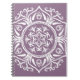 Esta mandala branca senta-se sobre um fundo púrpura claro. A cor é clara e sofisticada. Parte da Coleção Rosenn Mandala.