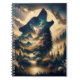 Caderno Espiral Wolf Howling na lua numa noite nublada