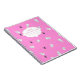 Um padrão de Dia das Bruxas giro bonito desenhado por Anne Londez, com crânios e aranhas em um fundo cor-de-rosa de tartã xadrez. Perfeito para um planejador anual espiral, mas feminino, personalizado com seu próprio nome. O texto é totalmente editável.