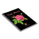 Notebook espiral preto com rosa-rosa na frente e "O ROSA Y-NOT-ME" com o logotipo Y-NOT-ME. Ela pode ser tão forte e resiliente quanto um salgueiro e tão bela e delicada quanto um rosa. Ela é ela. Quem mais queremos que ela seja?