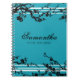 Um jornal espiral bonito com turquesa elegante, teste padrão de florescência preto e branco da árvore, com o texto customizável para adicionar seu próprio nome. Perfeito como um presente personalizado para toda a menina adolescente esta época natalícia, usa-o como um diário ou um planejador da escola.