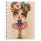 Traga doçura, brilho e capricho para sua escrita diária com este Caderno Menina Bailarina em Flor, apresentando uma encantadora bailarina de olhos grandes cercada por elementos florais, aquarela rosa suave e glitter dourado delicado.
