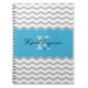 O caderno espiral do monograma feito sob encomenda cinzento moderno do teste padrão de ziguezague da viga caracteriza um acento de turquesa. Aperfeiçoe para um jornal, tomando notas, trabalho, escola e casa. Faz um grande presente para todas as ocasiões. Clique "personalizam-no!" abotoe para mudar o tamanho do texto, cor de texto, estilo de pia batismal, adicione o texto e o mais!