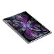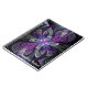 © 2014 de Copyright, Susan Wallace. O vitral do falso sae nas máscaras do roxo brilhante, da prata, da pervinca e do quadro violeta uma flor central do roxo vibrante nesta parte abstrata intrincada.