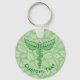 cobra caduceus solteiro com folhas de menta sobre fundo verde claro sem costura. Texto personalizado de ambos os lados.