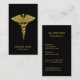 Design de negócio elegante profissional para finalidades médicas: símbolo precioso do Caduceus do ouro em um fundo preto. Aperfeiçoe para relacionado com o mercado aos cuidados médicos como um escritório médico, o escritório do doutor, a clínica ou o hospital. Para o pessoal hospitalar, médicos, enfermeiras; elegante, nobre e elegante.
