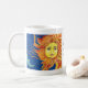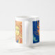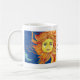 Café A arte azul, caneca amarela, alaranjada de Sun da