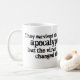 Esta caneca caracteriza a linha de Tag APÓS DO TÉRMINO (a série de término, #1). "Sobreviveram ao apocalipse, mas o vírus mudou-os."